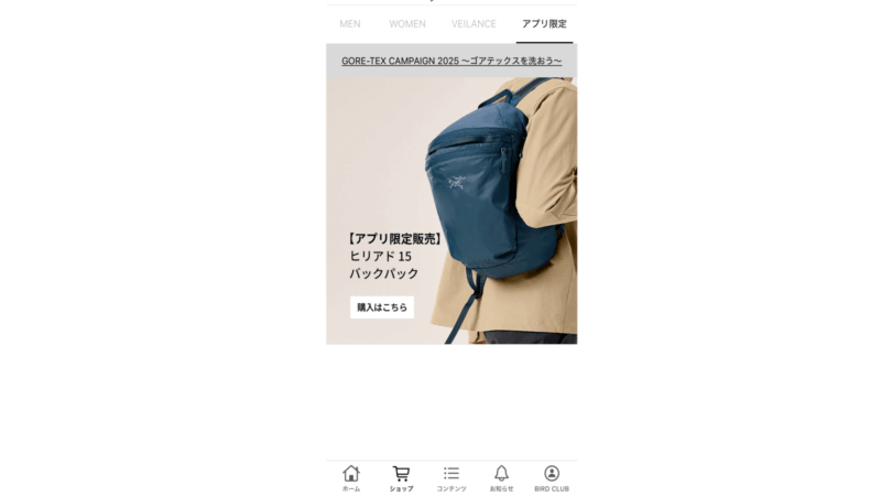 アークテリクスの公式オンラインストアアプリは必ずインストールしておいてください