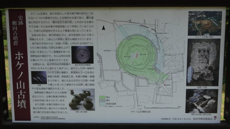 ホケノ山古墳では中国製の鏡や鉄・青銅製の鏃、土器などが見つかっていて纏向の有力者の墓と考えられています