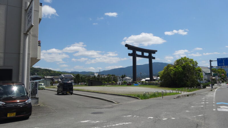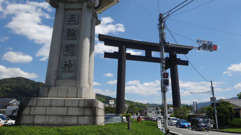 桜井市立埋蔵文化財センターからJR三輪駅には目の前に見える大神神社大鳥居を通って向かいます