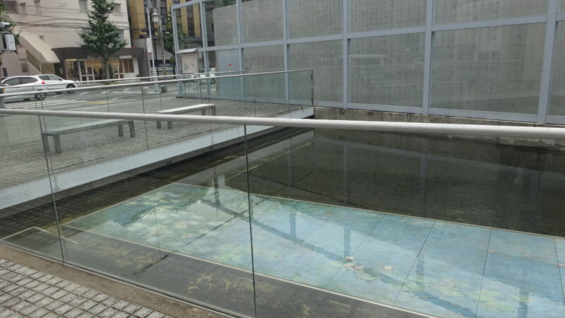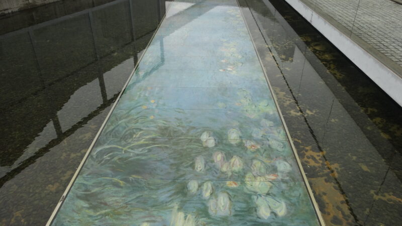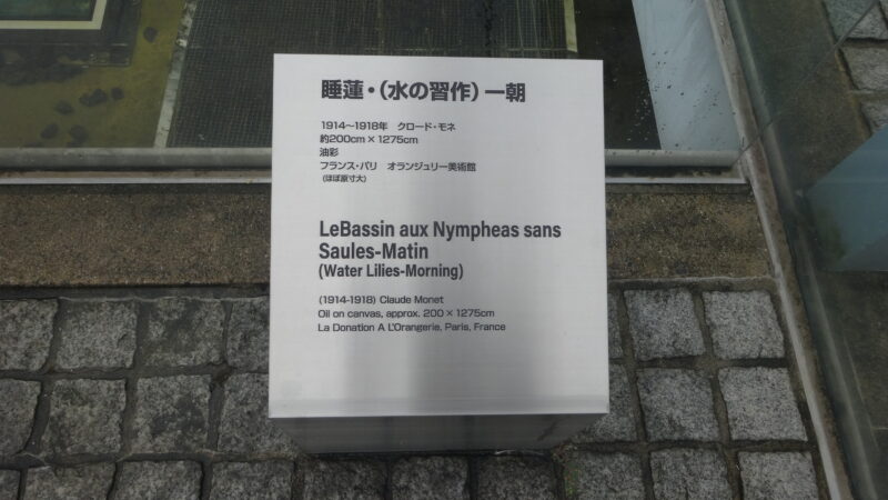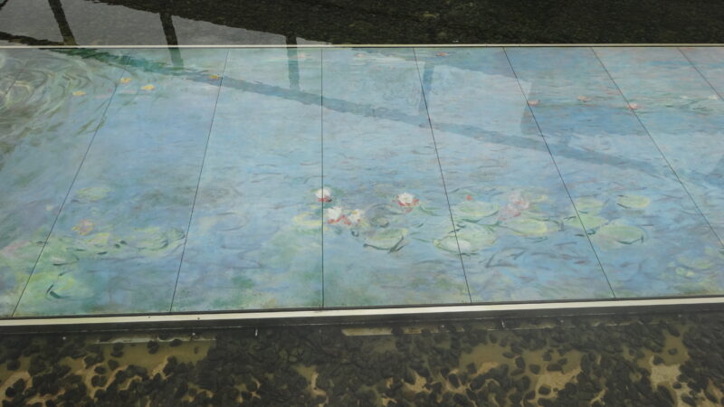 入り口を入ると直ぐにモネの睡蓮・朝がプールの中に展示されています