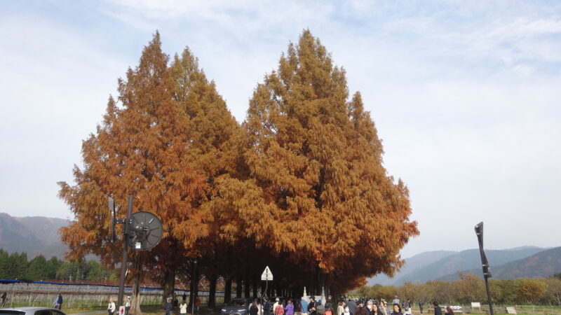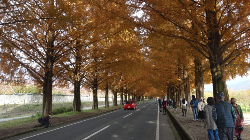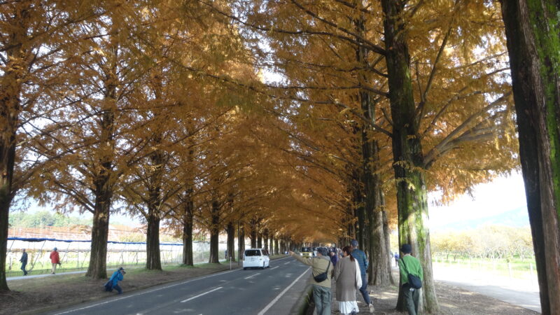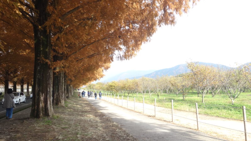 しかしメタセコイアの大木の色づいた葉が重なり合い並木道として続く様子は見るものを圧倒されました