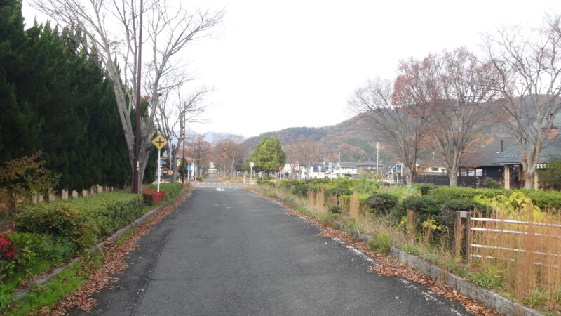 湖のテラスからJRマキノ駅まではアクアパレス通りという広い道が真っすぐ続いています