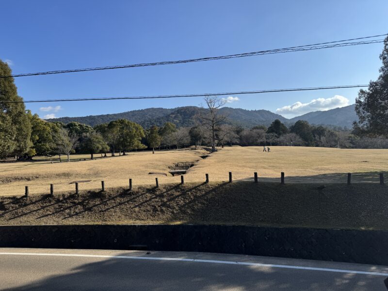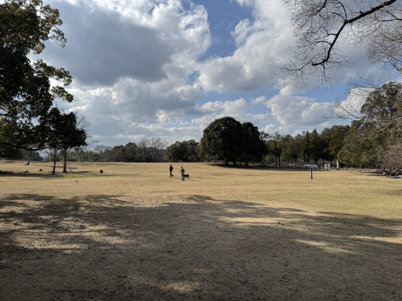 右手には飛火野(とびひの)と呼ばれる広大な芝生の原っぱが見えます