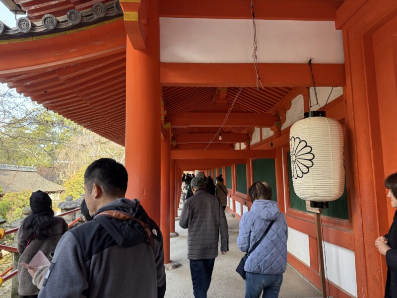 この本殿の周囲を取り囲む回廊は朱色の柱が連なる美しい通路で春日大社の象徴的な風景の一つになっています