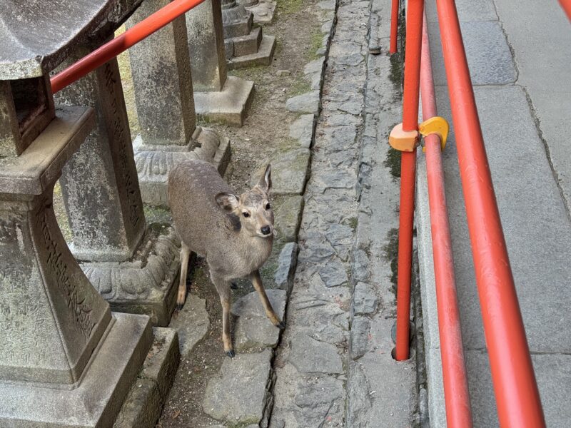 参道には野生の鹿が参拝客と一緒に歩いていて、それが普通な風景となっています