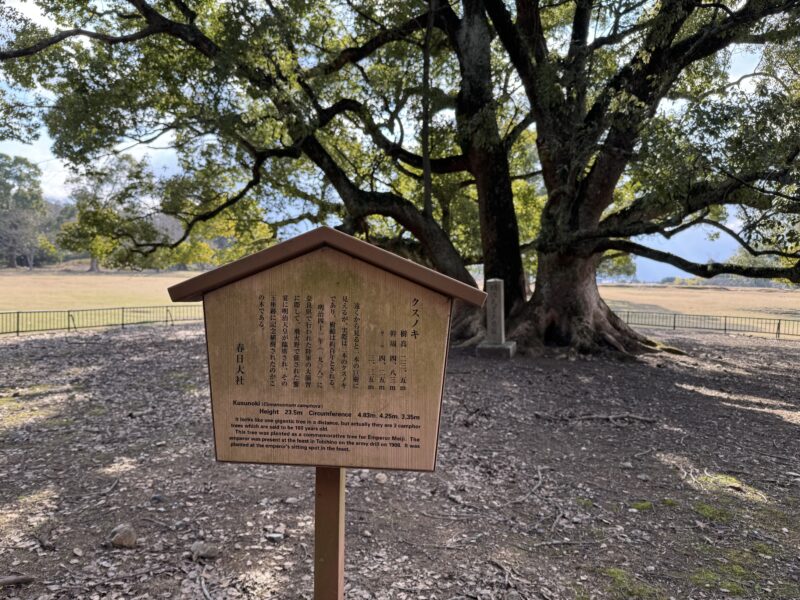 明治天皇の玉座跡に植樹された飛火野の大楠と呼ばれる巨樹