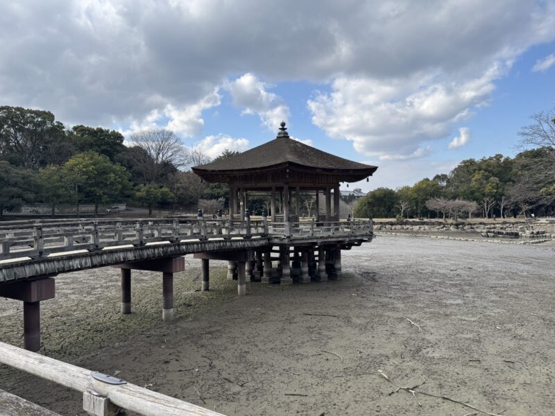 訪れた日は池の水抜きを行っていたので池の水はありませんでした