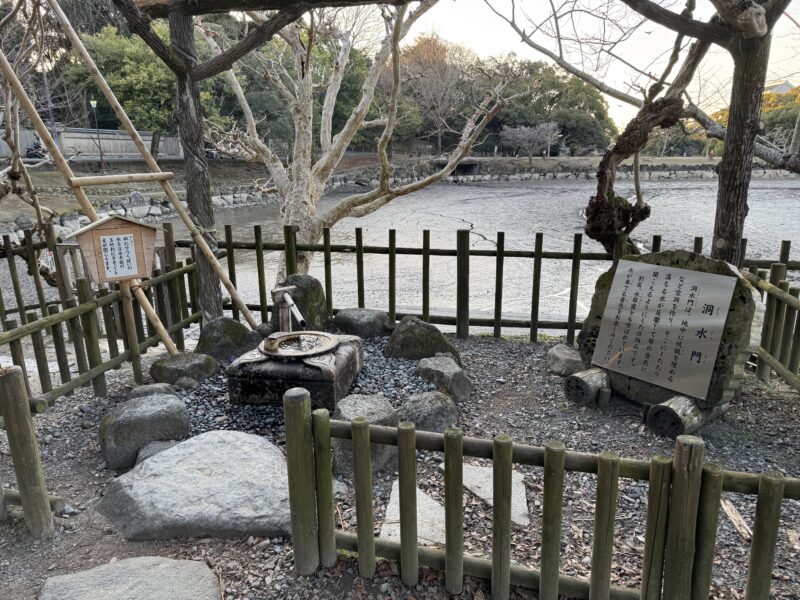 浮見堂がある鷺池の橋のたもとに「洞水門」があります