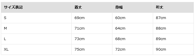 WAIPER.incのWEBサイトよりサイズ表をお借りしました