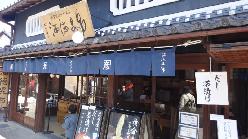 古い町並みを再現したお土産物屋や名産品、グルメショップが並んでいます